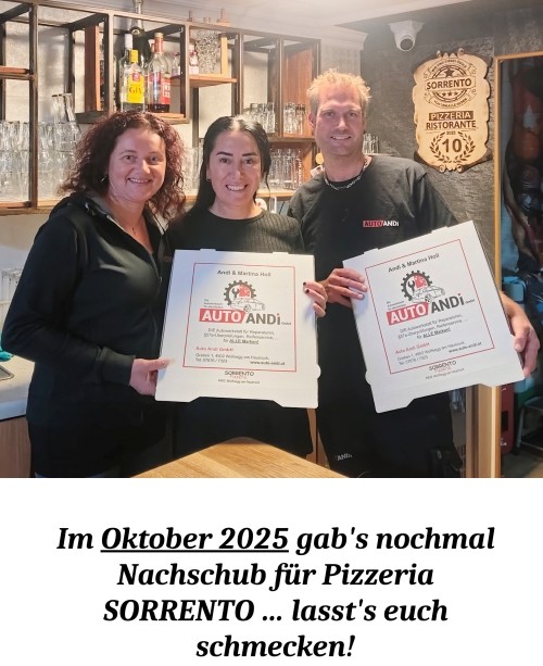 Im Jänner 2024 haben wir den beiden Pizzerias Sorrento, Wolfsegg und Vino Rosso, Ottnang